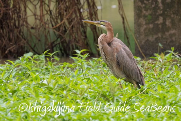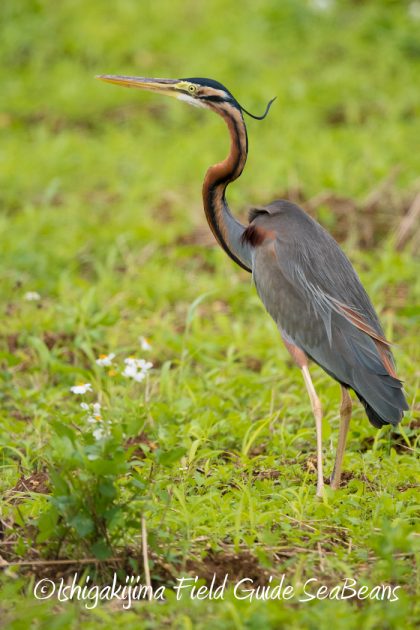 キビ畑から飛び出したムラサキサギ成鳥。