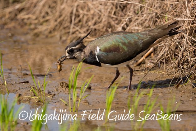 オケラを捕獲したタゲリ。