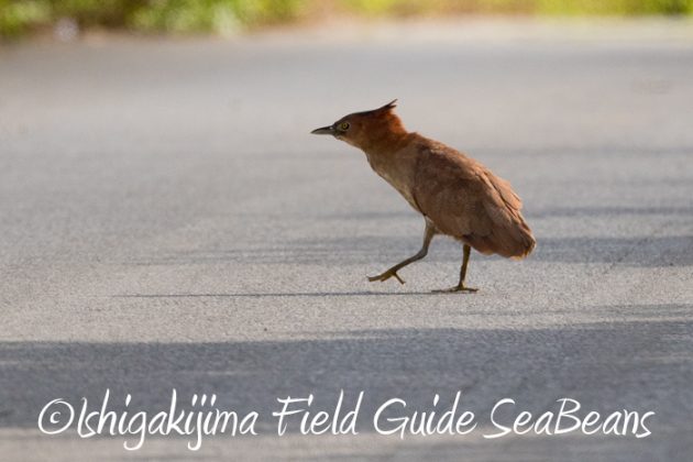 道路横断中のズグロミゾゴイ。