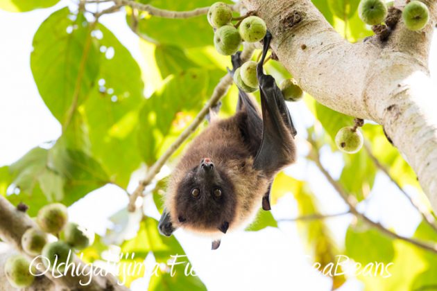ギランイヌビワを食べるヤエヤマオオコウモリ。