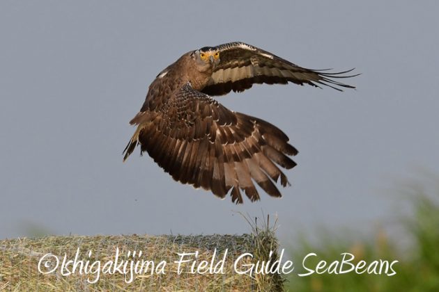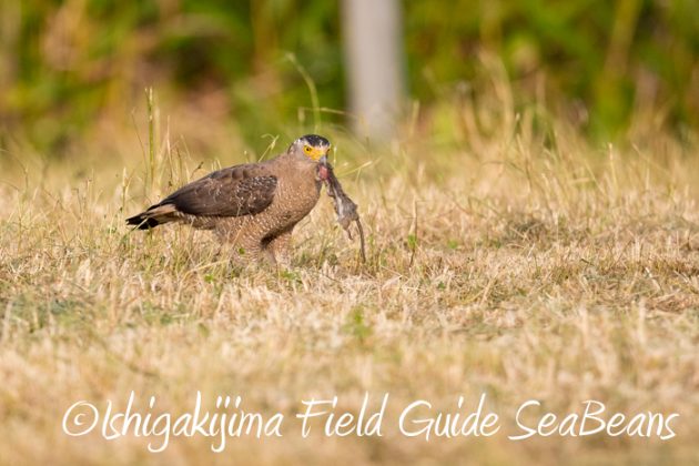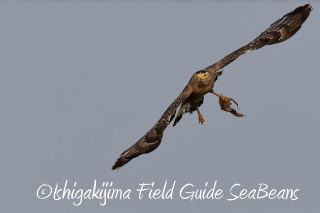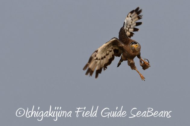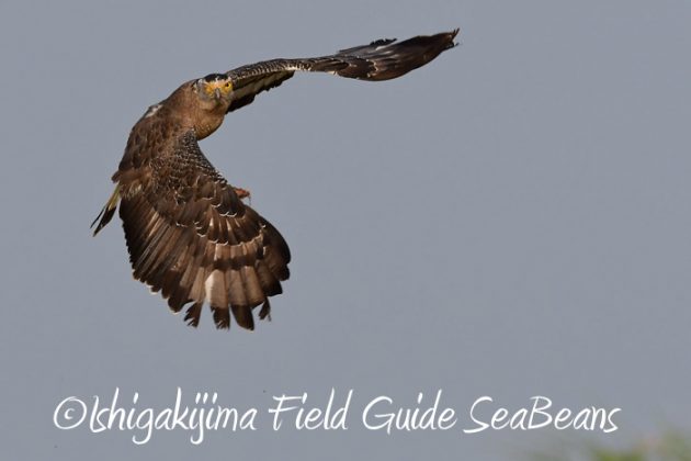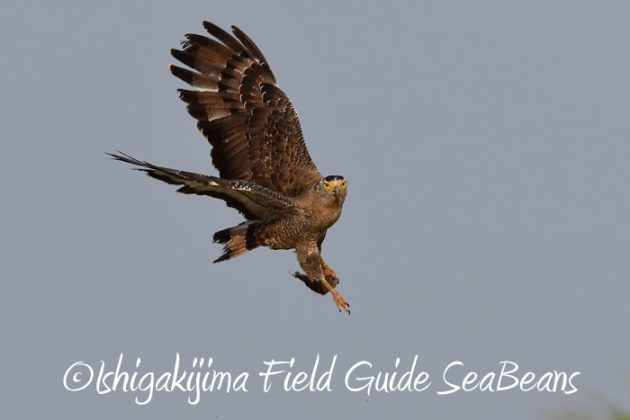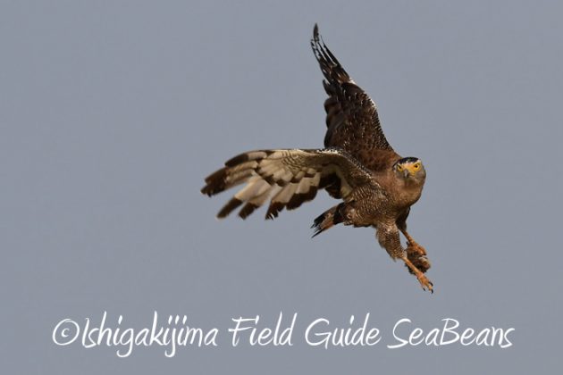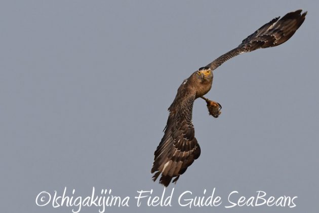 ネズミを持ったままカンムリワシが飛んで行きました。