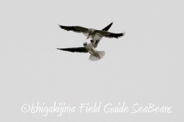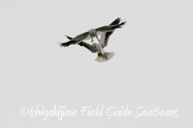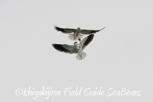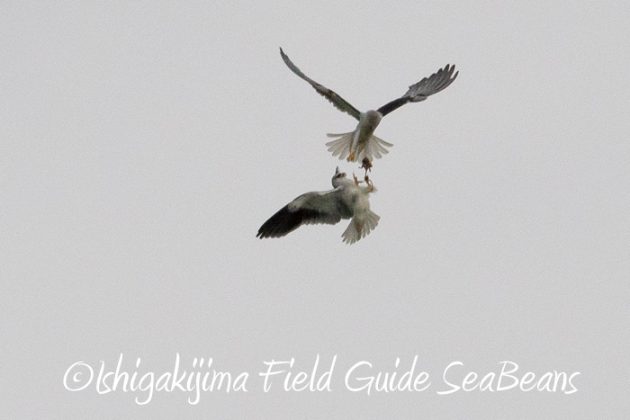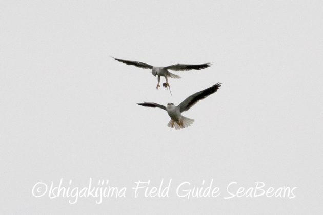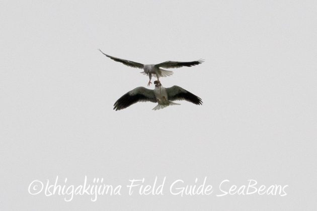 遠い空でカタグロトビが餌のネズミを受け渡していました!!