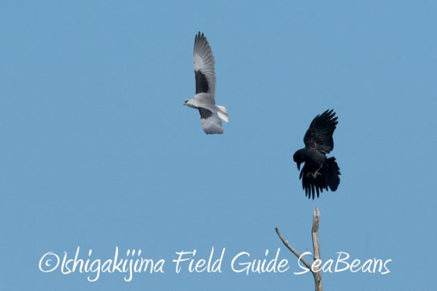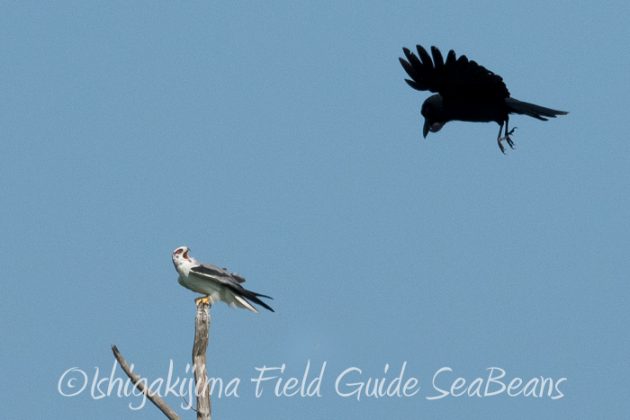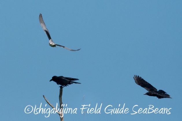 オサハシブトガラスと揉めるカタグロトビ。