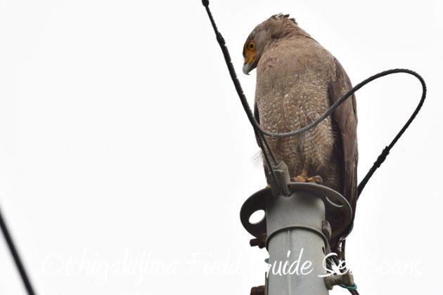 電柱の上にカンムリワシ。