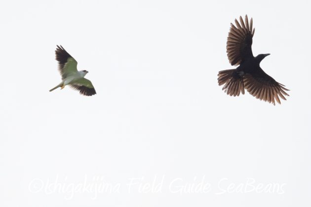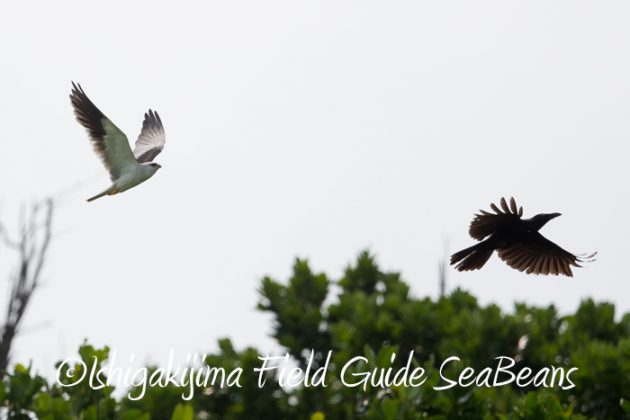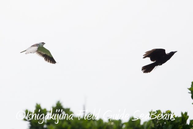 カタグロトビがオサハシブトガラスを追いかけていました!!