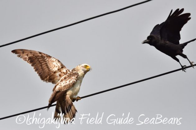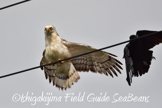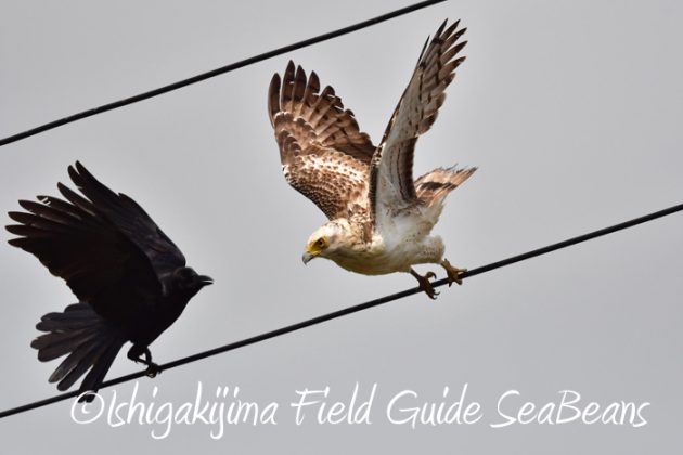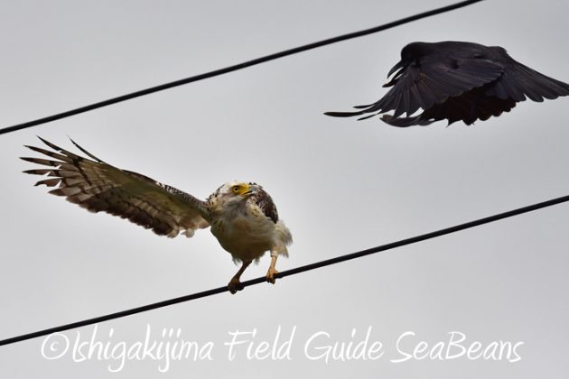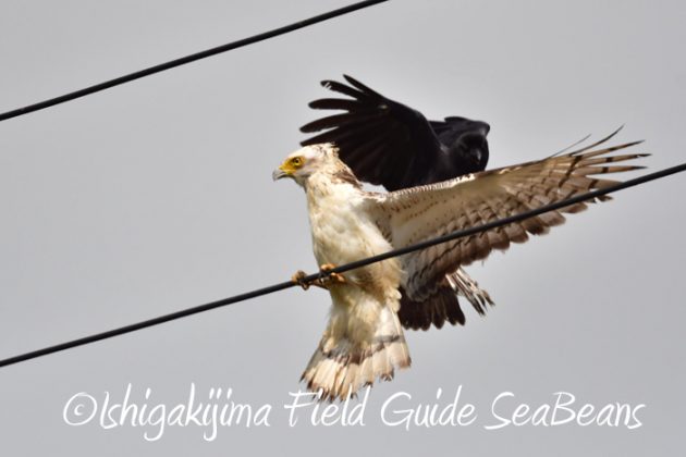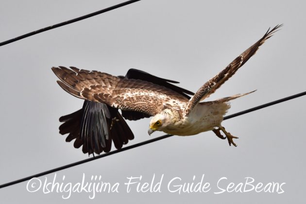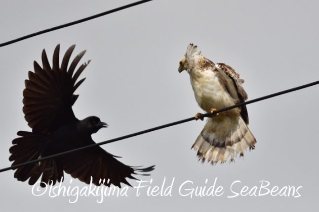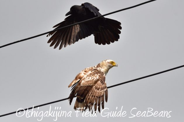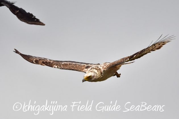 本日2羽目のカンムリワシ、パッと観は成鳥のように見えましたが、まだ幼鳥羽が残る2歳くらいの個体でした。