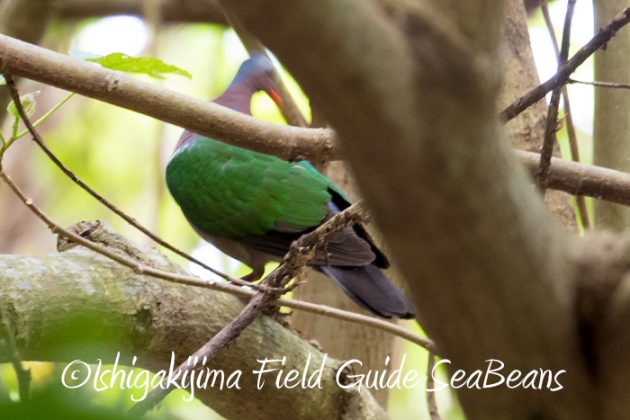 キンバト雄成鳥が目の前に止まったのですが・・・枝かぶり、暗い、そしてすぐに飛んで行きました。
