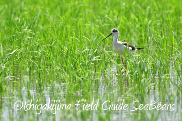 田んぼには鳥が非常に少ないですが、セイタカシギが居てくれました。