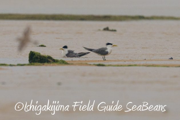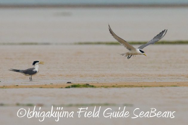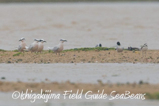 エリグロアジサシとコアジサシとシロチドリ。