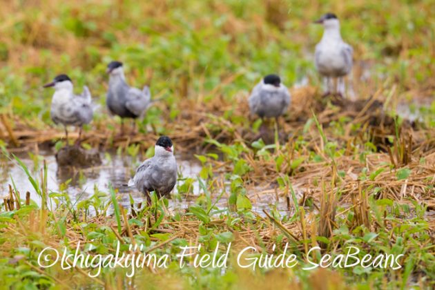 クロハラアジサシが十数羽群れていました。