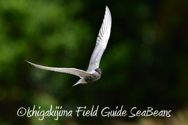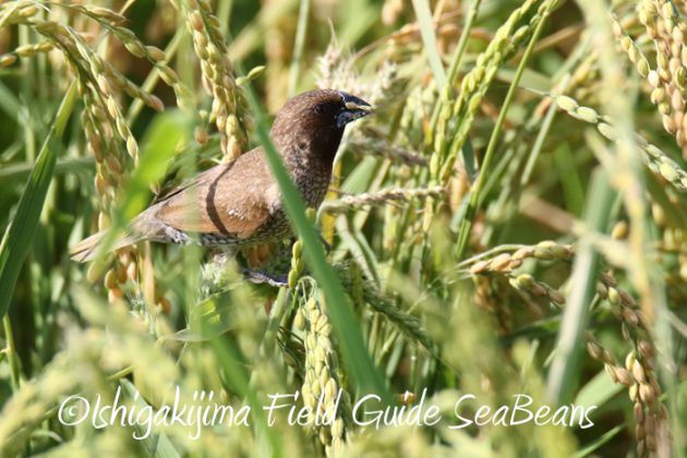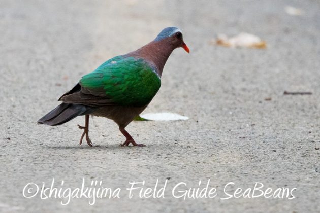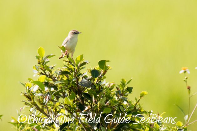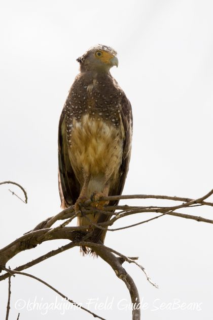 南国らしい背景の枝先にヤエヤマシロガシラ。