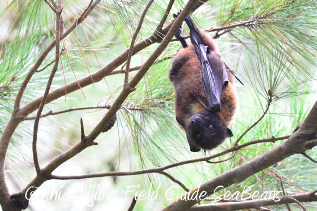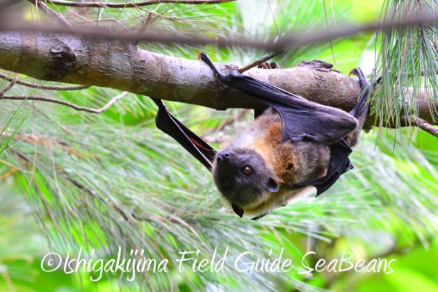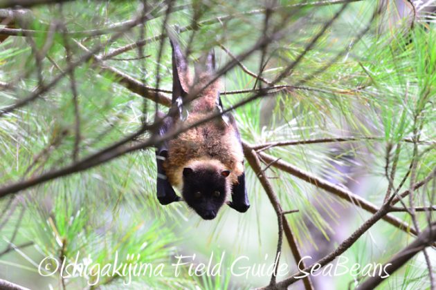 リュウキュウマツにヤエヤマオオコウモリがぶら下がっていました。