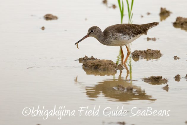 アカアシシギが渡来。