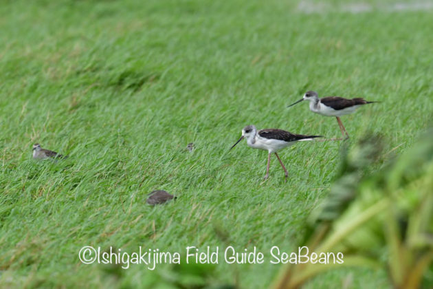セイタカシギ、タカブシギ、キアシシギ。