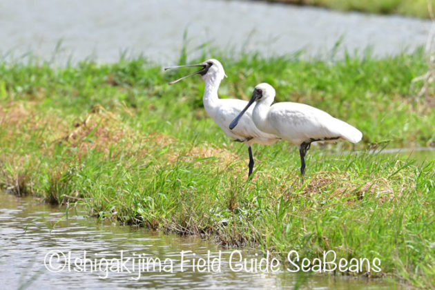 クロツラヘラサギ2羽が渡来。