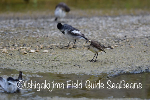 ハクセキレイとツメナガセキレイが水浴びを楽しんでいました。