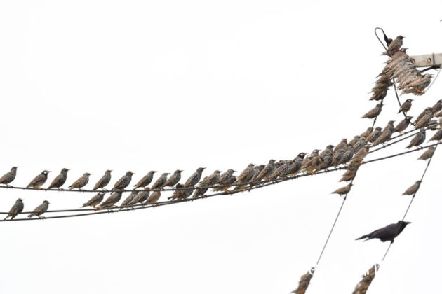 ホシムクドリ大群とムクドリ。
