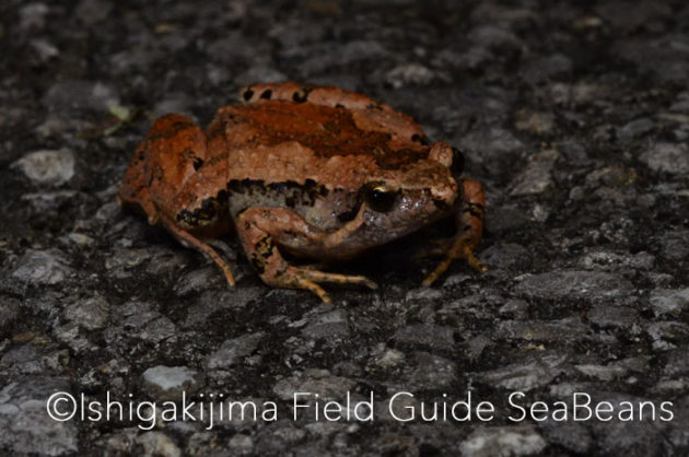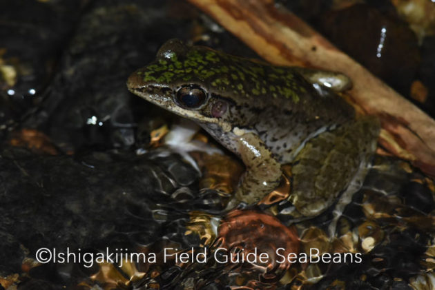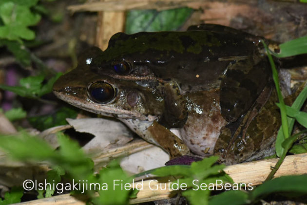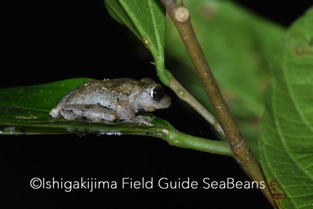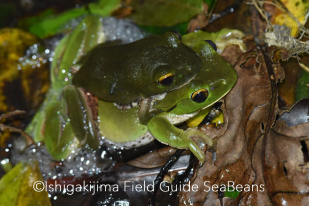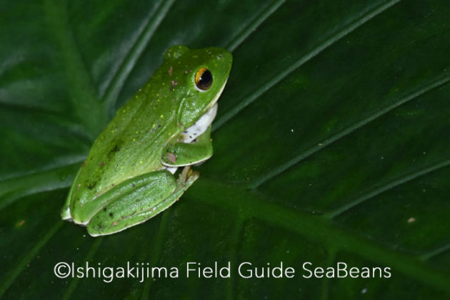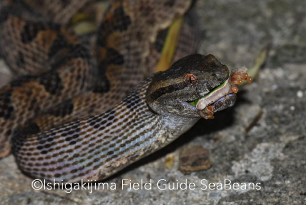 ヤエヤマアオガエルを食べているサキシマハブ。