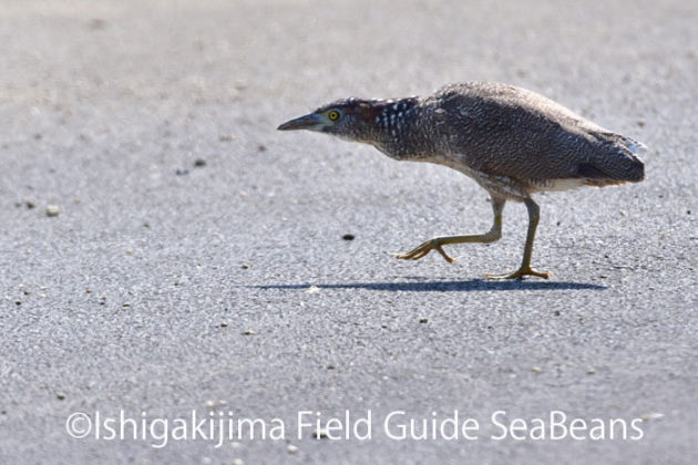 道路横断中のズグロミゾゴイ若。
