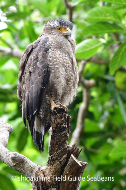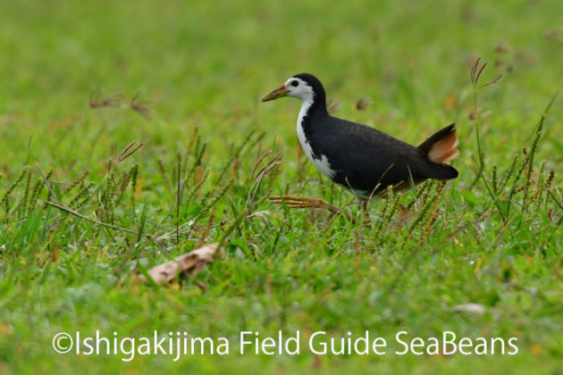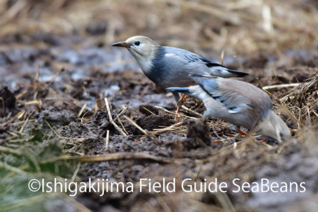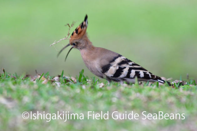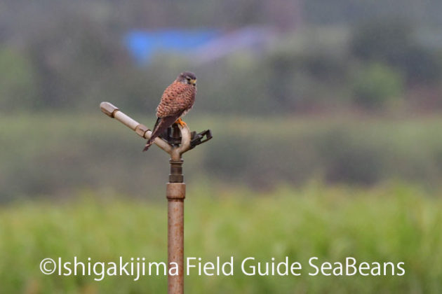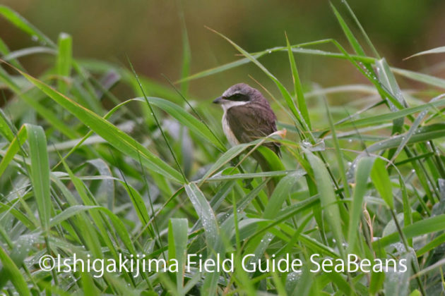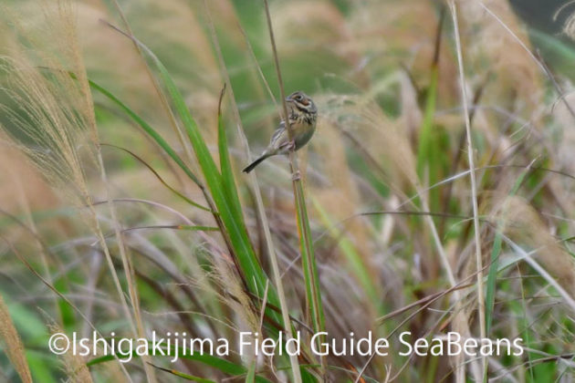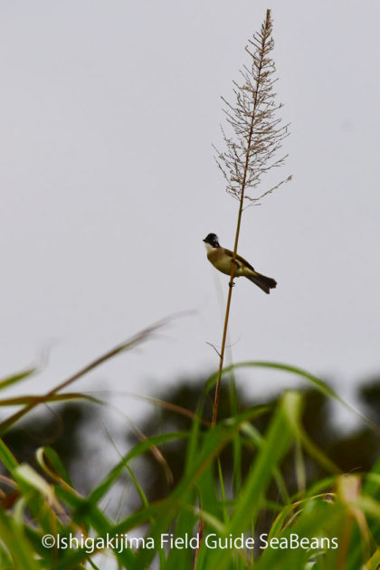 サトウキビの花に止まったヤエヤマシロガシラ。