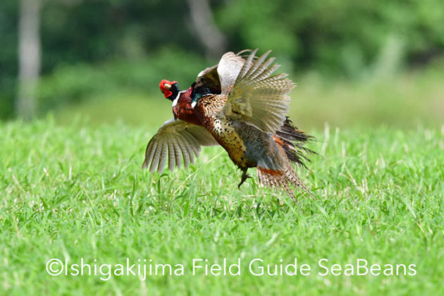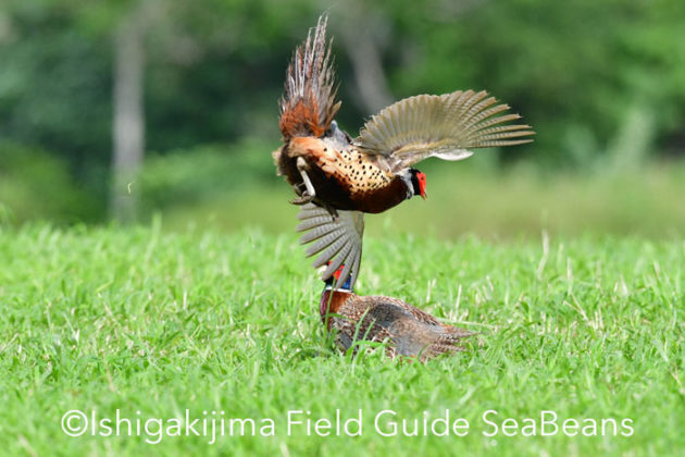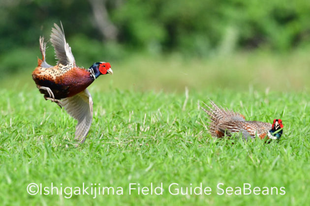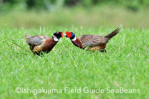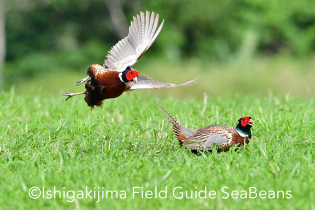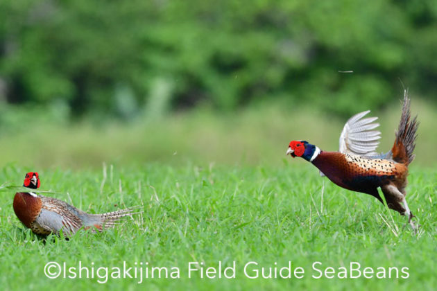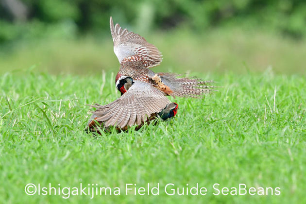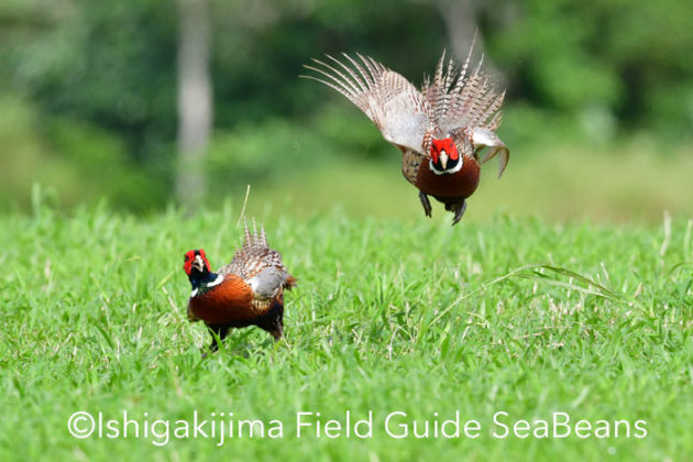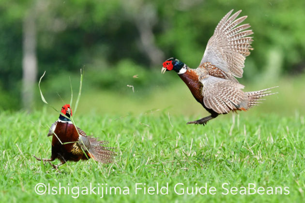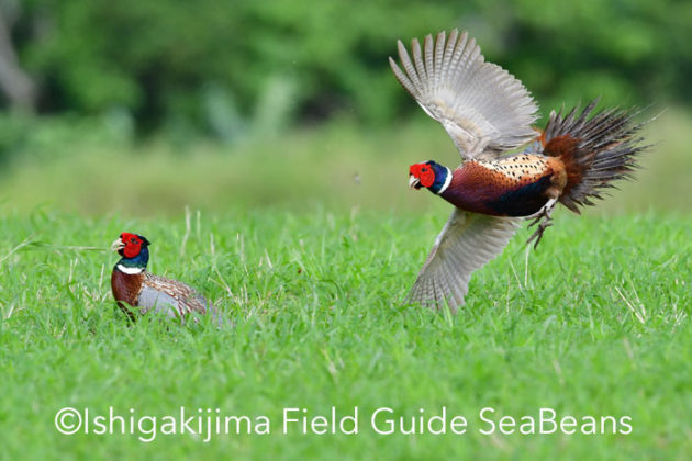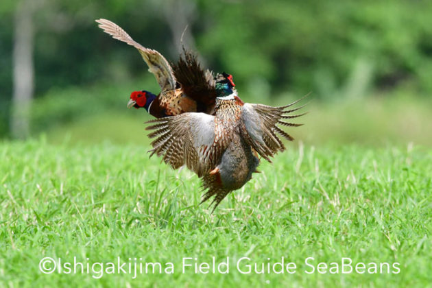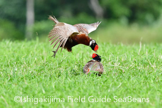 コウライキジ雄2羽が喧嘩?じゃれあい?をしていました。