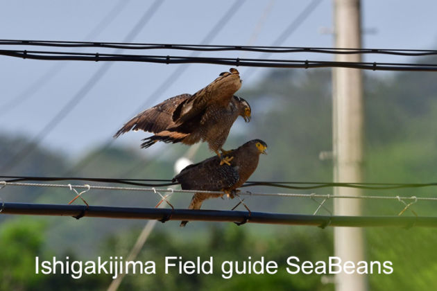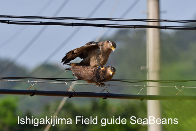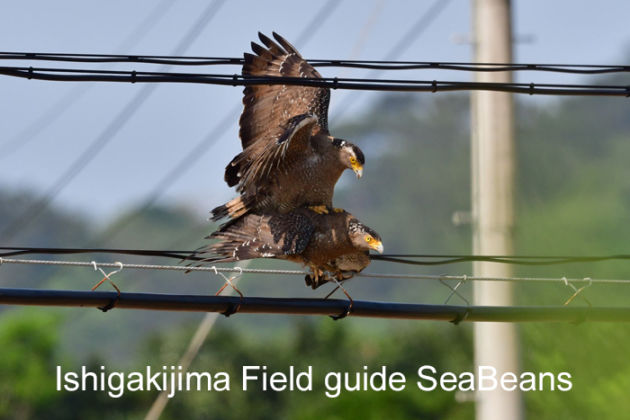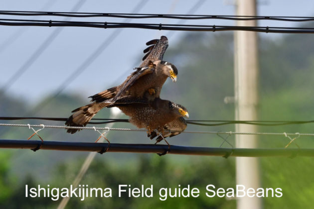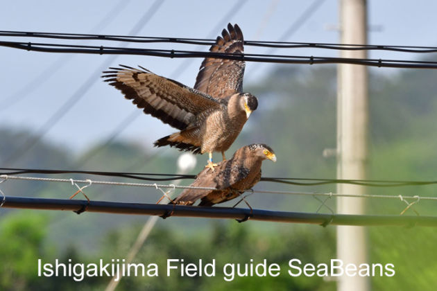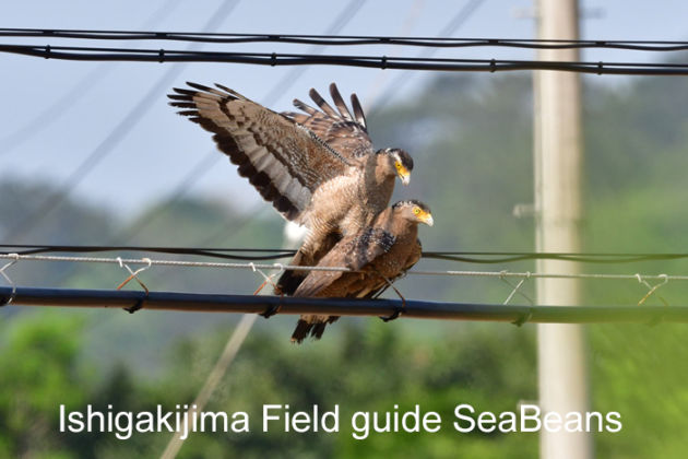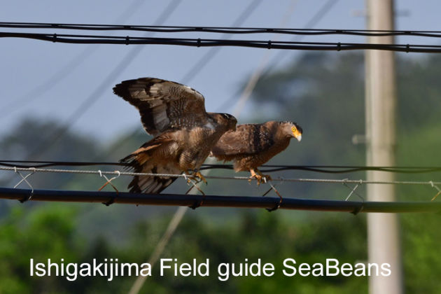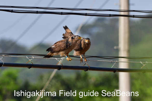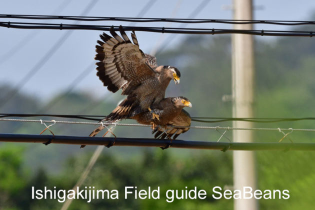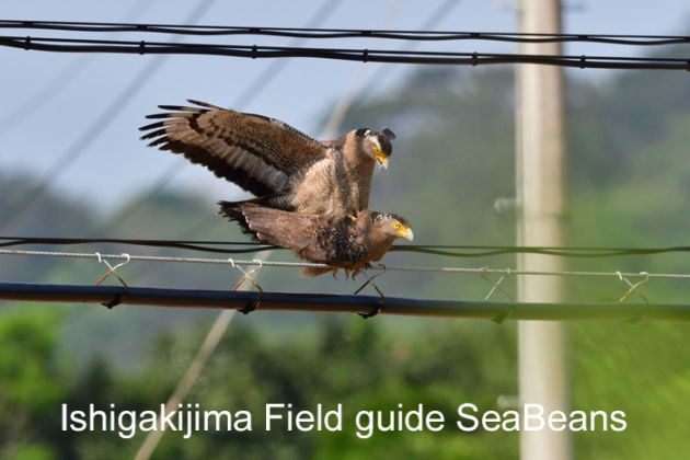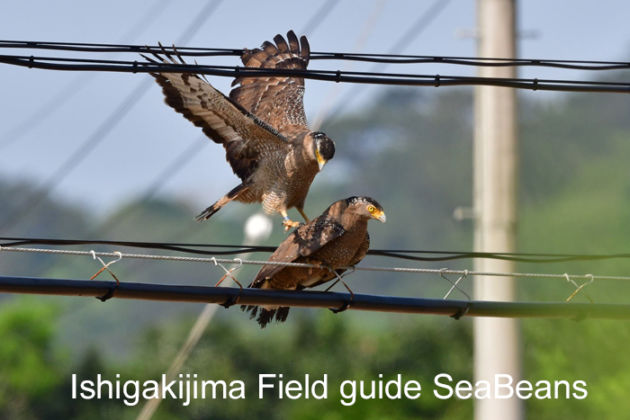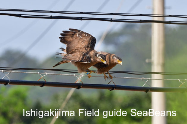 電線に止まっていたカンムリワシ雌の横にとまりました!!