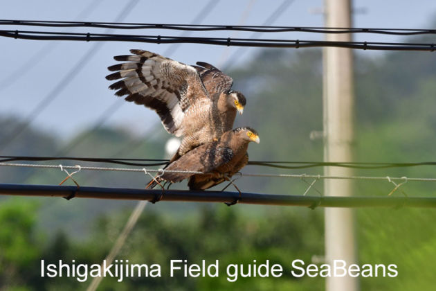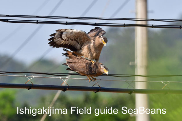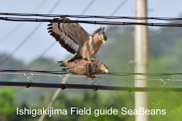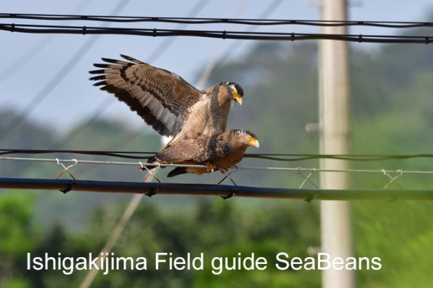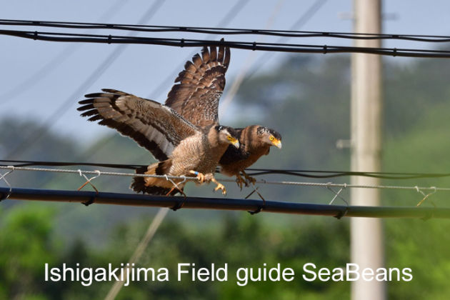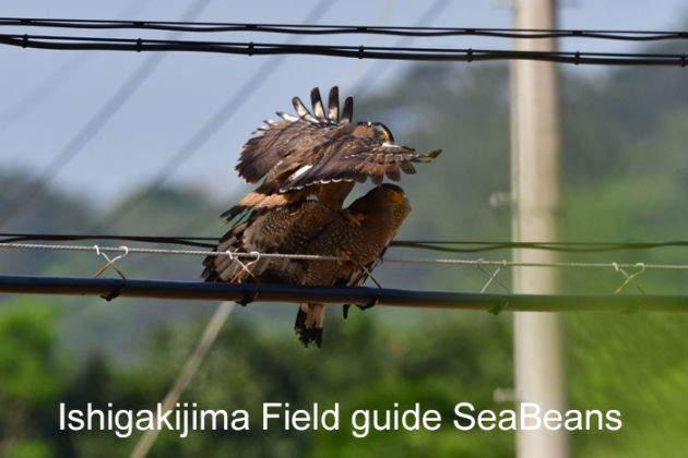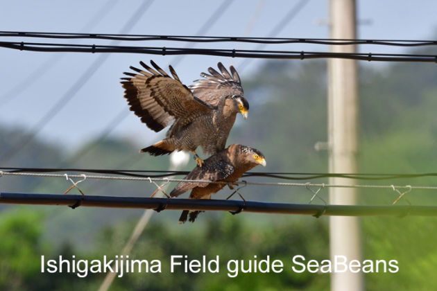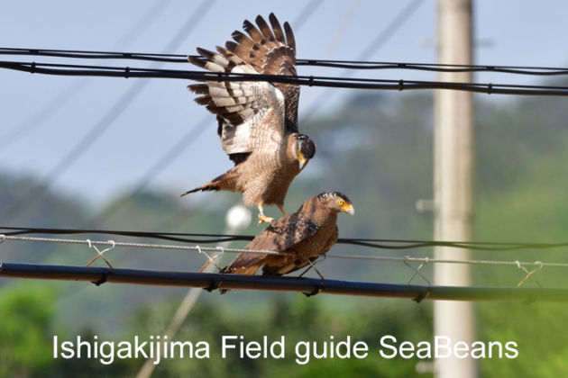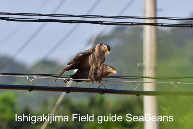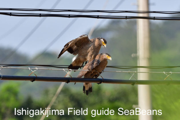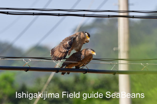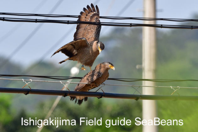 電線に止まっていたカンムリワシ雌の横にとまりました!!
