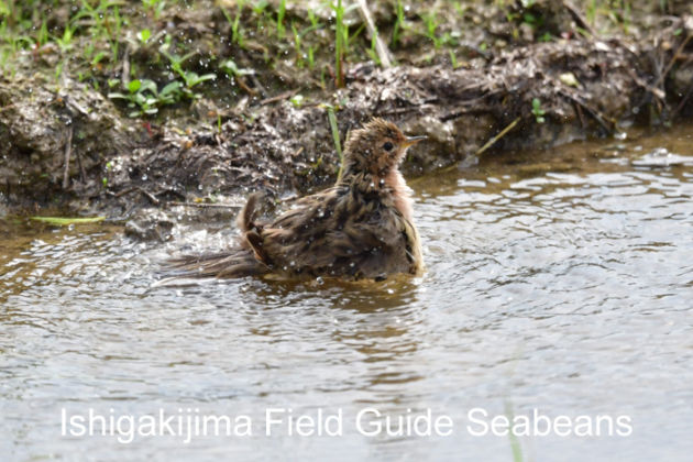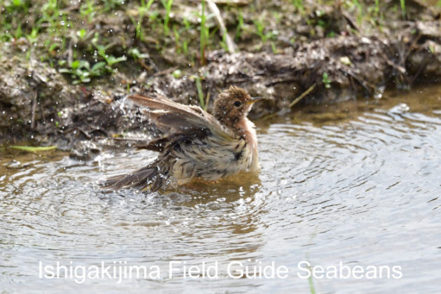 水浴び中のムネアカタヒバリ。