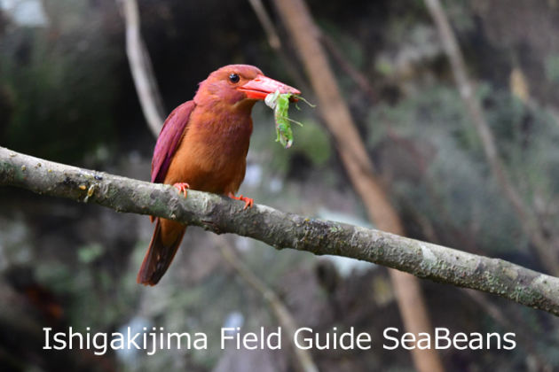 バッタ?を捕獲したリュウキュウアカショウビン。