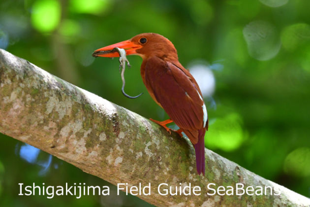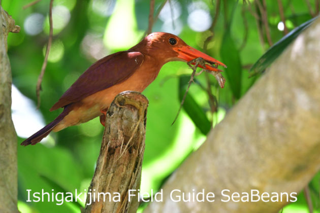 イシガキトカゲを捕獲したリュウキュウアカショウビン。