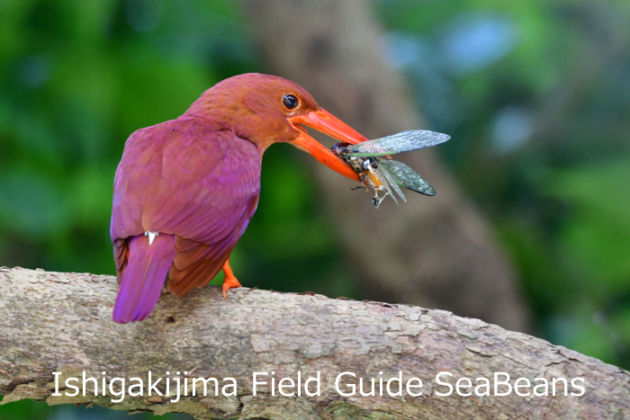 クマゼミを捕獲したリュウキュウアカショウビン。