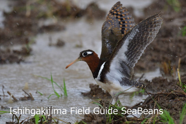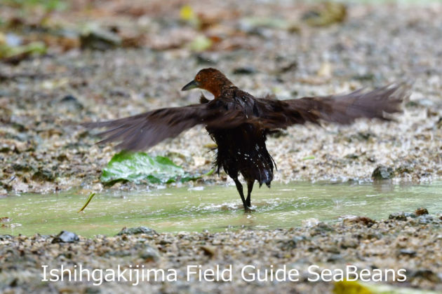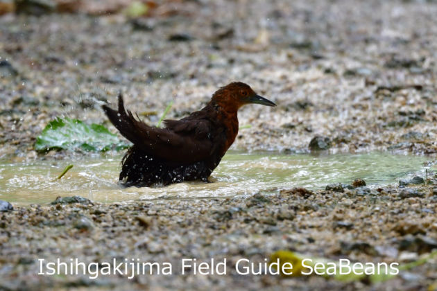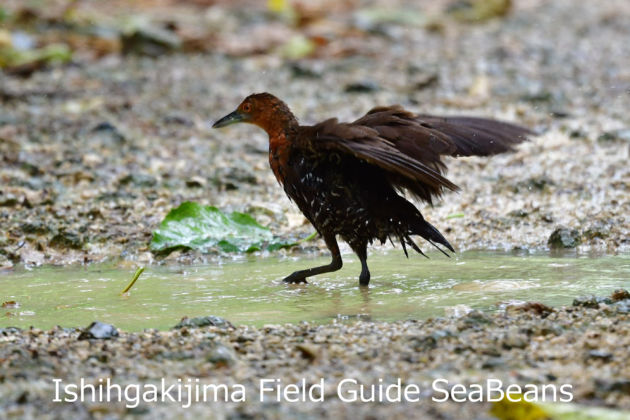 大雨で既に全身びしょ濡れなのに、なぜか水浴びをするオオクイナ雄。