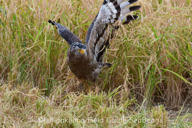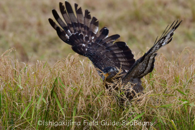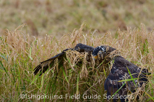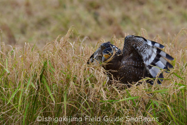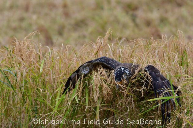 生い茂った稲の中に逃げた獲物を追いかけて飛び込みました。