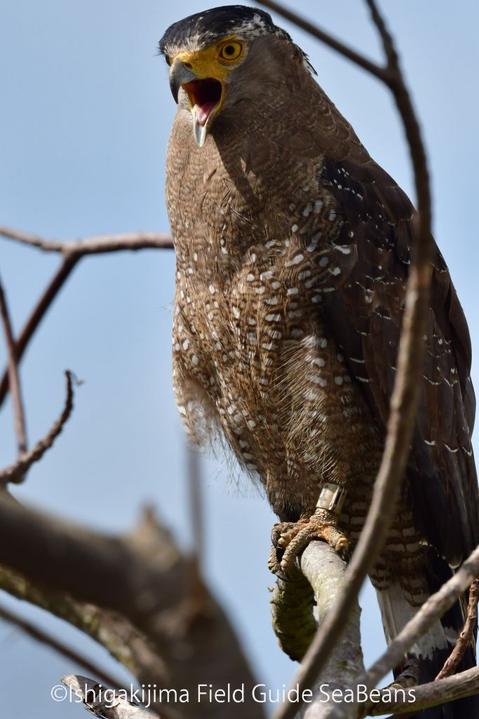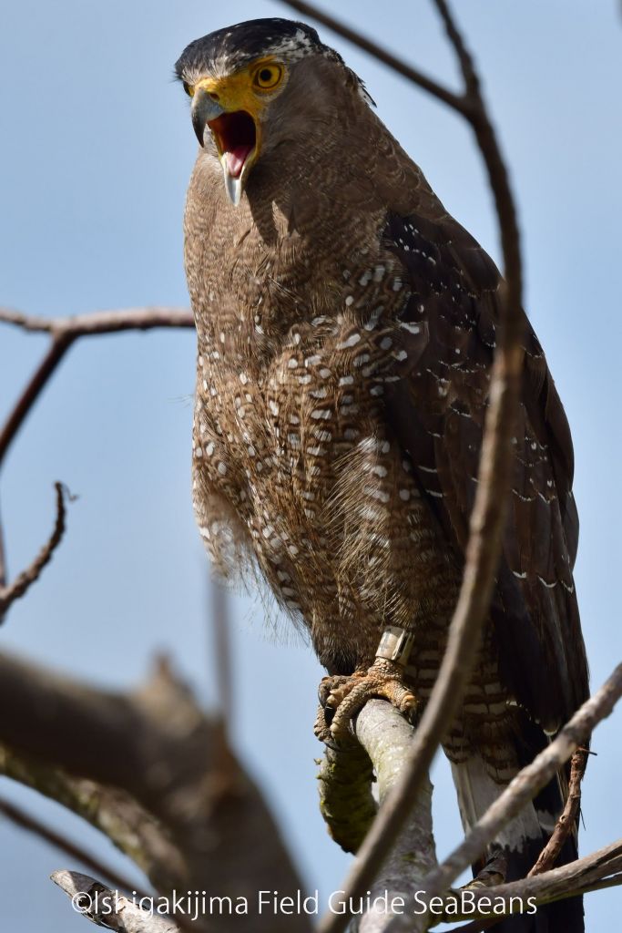 日当たりの良い枝にカンムリワシが止まっていました。