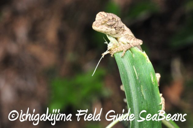 気持ち良さそうに寝ていたサキシマキノボリトカゲ。