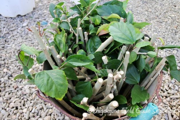 そして伸びまくったハイビスカスの枝を剪定して、ハイビスカスの苗木を作りました。