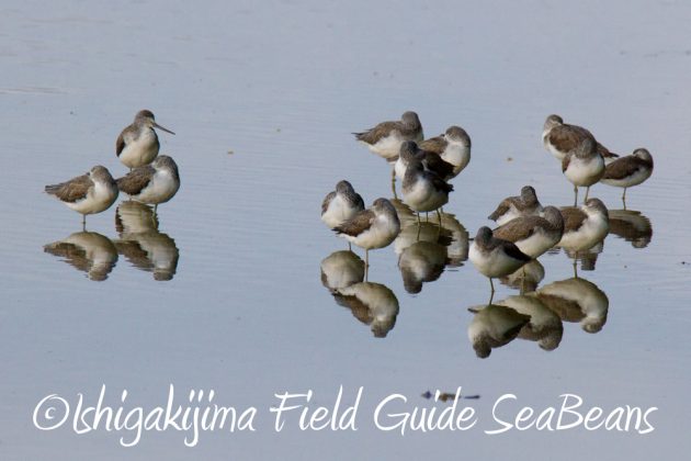 アオアシシギの群れ。