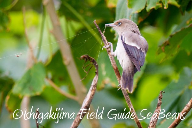 カラムクドリが蜘蛛を捕食していました。