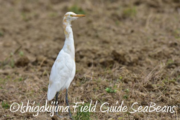 頭部に夏羽のオレンジ色が残ったアマサギ。