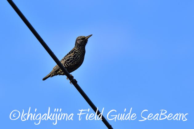 ムクドリの群れの中に数羽のホシムクドリが混ざっていました。