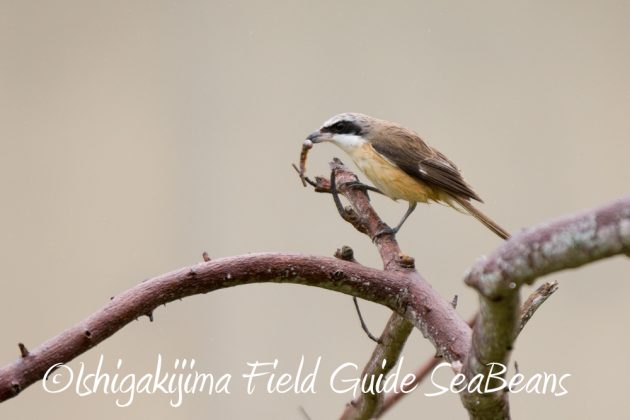 ミミズを捕獲したシマアカモズ雄成鳥。