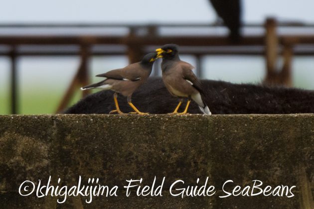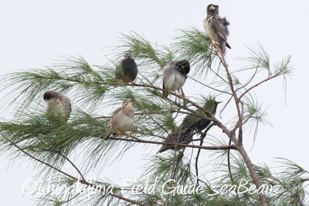 ムクドリの大群にホシムクドリ数十羽、そして1羽のギンムクドリ雌成鳥が混ざっていました。