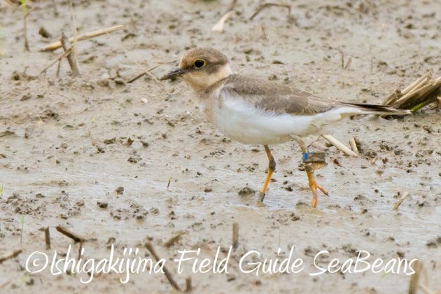 足環を付けたコチドリを発見、左足を痛めているようで歩きにくそうでした。