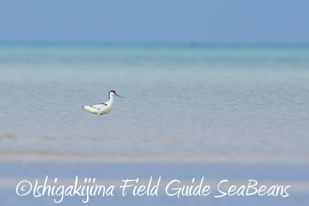 美しい石垣島の海にソリハシセイタカシギ。