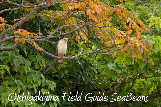 カンムリワシ幼鳥がハゼノキに止まっていました。