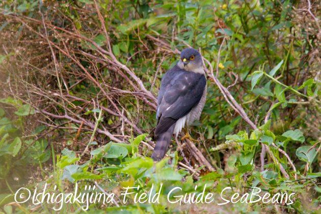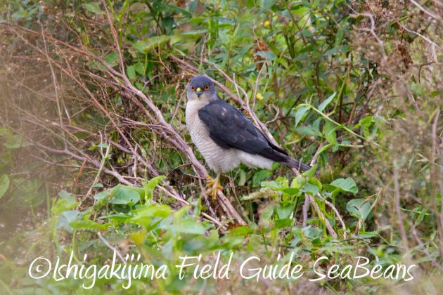 草むらにリュウキュウツミ雄成鳥が飛び込んだので、丁寧に探してみたら、