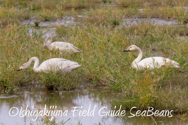 成鳥も汚れて幼鳥のようになってきたコハクチョウたち。