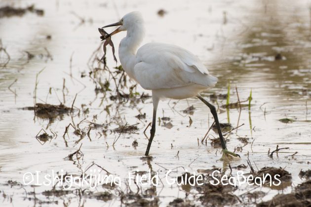 コサギがサキシマヌマガエルを捕獲!!