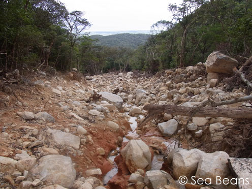 カラスザンショウ等の先駆植物が生えては倒れてを繰り返しながら、少しずつ元の自然に戻って来ています。
