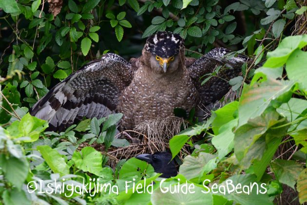 それをオサハシブトガラスが狙っているので、ずっと冠を立てて脅していたようです。